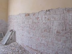 Pe parcursul celor 5 luni de execuţie scurse de la demararea lucrărilor au fost realizate lucrări de rezistenţă infrastructură, rezistenţă suprastructură, hidroizolaţie prin impregnare chimică, desfaceri arhitectură, refaceri arhitectură iar stadiul lucrărilor executate este peste 50%.